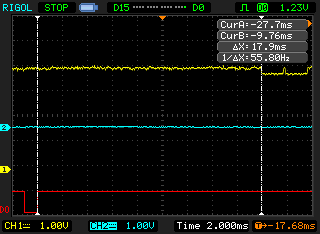 With the previous attempt, we've already uncovered a flaw in the anti-bruteforce-routines the device attempts: When we lower the voltage as soon as the PIC tries to write the number of attempts left to the EEPROM, we can make it write garbage which then gets interpreted as a valid and high, number. The problem with this is that every try still takes 3 to 4 seconds, which is a bit too much when the code is at least 6 digits. Can we perhaps shorten that time? Perhaps the timing technique we used earlier can help. Let's see what the delay between stopping to scan the keypad matrix and the start of the EEPROM write is on a completely good and a completely wrong attempt: